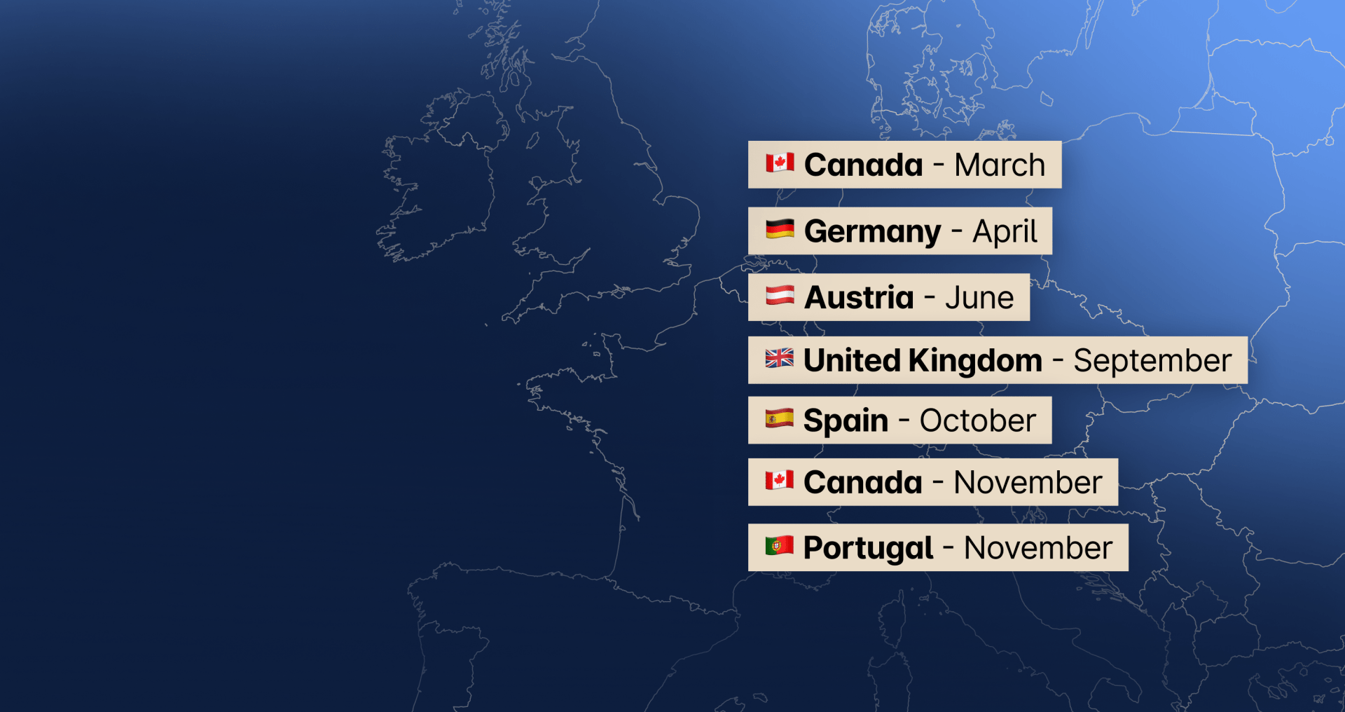 United Kingdom, Spain, Canada, Portugal.