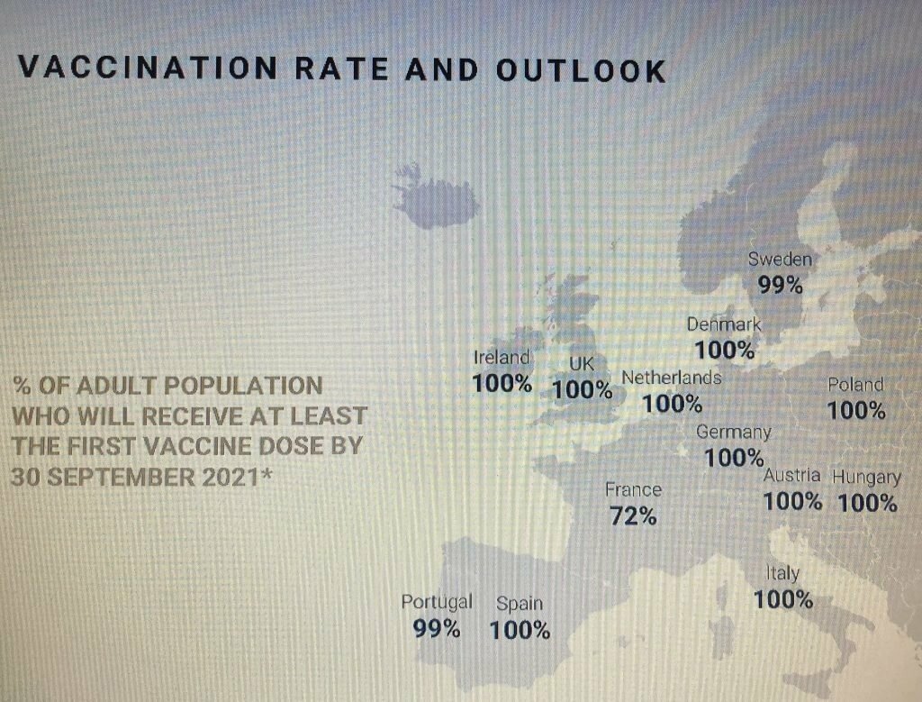 “Most EU countries will be at a 100% vaccination rate by 30 September, with France the laggard at 72%,” said Martin Varga, business development manager, Bonard. “Face to face tuition should resume in the next academic year, with some universities making vaccines mandatory.”